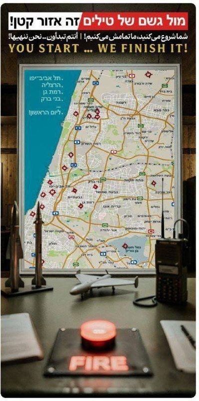 تداول نشطاء على مواقع التواصل الاجتماعي في إيران، يوم الأحد، صورًا تُظهر نصب لافتة عملاقة في ميدان فلسطين بالعاصمة طهران، تتضمن خريطة تُبرز أهدافًا محتملة داخل مدينة تل أبيب. اللافتة حملت رسالة تحذير مباشرة باللغة العبرية تقول: «أمام وابل الصواريخ هذه منطقة صغيرة.. أنتم تبدأون.. ونحن ننهي»، في إشارة واضحة إلى انتقال الصراع من مستوى التهديدات الضمنية إلى خطاب ردع علني.