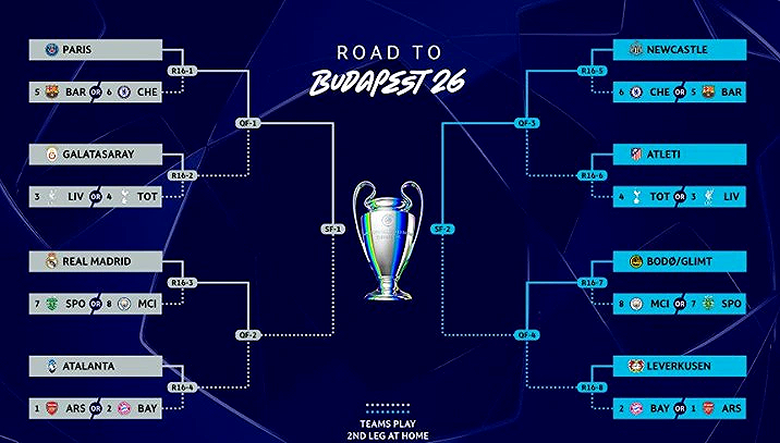 اكتمال المتأهلين إلى ثمن نهائي دوري أبطال أوروبا 2025-2026 بعد ملحق ناري