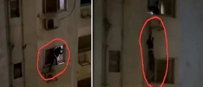 وفق روايات شهود العيان، استغل المتهم وجود وحدات تكييف مثبتة على واجهة العمارة، وبدأ في القفز من تكييف إلى آخر محاولًا النزول تدريجيًا من الدور العاشر.
