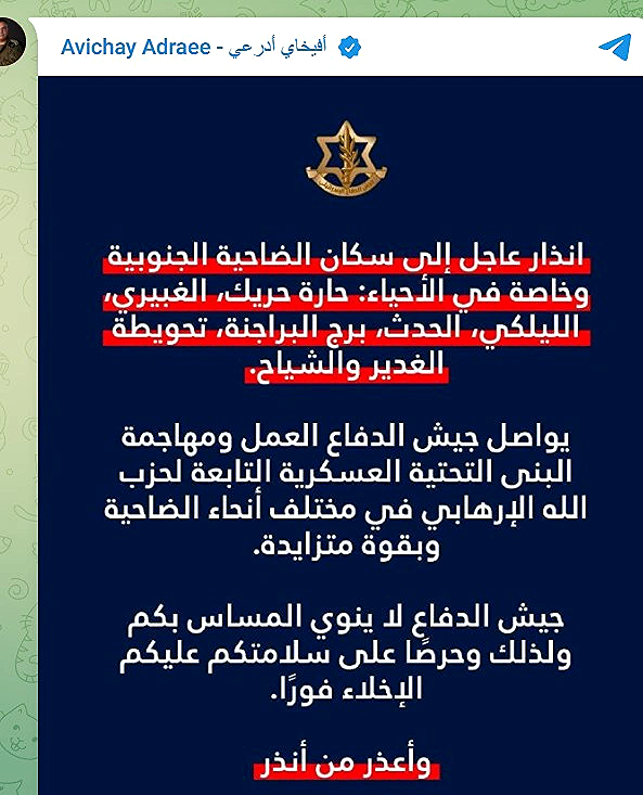 التطور الأخطر يتمثل في عودة الغارات الإسرائيلية إلى الضاحية الجنوبية لبيروت، وهو ما يعكس انتقال المواجهة من الحدود إلى قلب العاصمة.