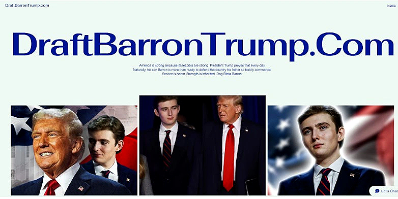 وعرض الموقع صورًا عدة لبارون ترامب، الذي يبلغ من العمر 19 عامًا، مع رسائل ساخرة تدعو إلى تجنيده في الجيش الأمريكي وخدمته خارج البلاد.