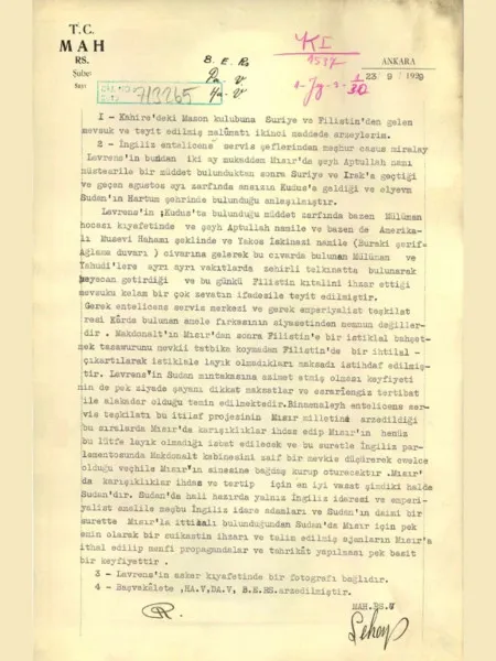 الوثيقة التي كُشفت هي مذكرة أعدتها مديرية جهاز الأمن القومي التركي بتاريخ 23 سبتمبر 1929، وأُرسلت إلى رئاسة الأركان العامة ووزارتي الداخلية والخارجية، وتضمنت صورة للورنس بزيه العسكري.