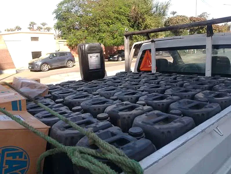 حيث تم ضبط سيارة نقل محمله بـ طن زيوت محركات السيارات مجهولة المصدر بدون فواتير و مستندات بناحية بندر الأقصر.