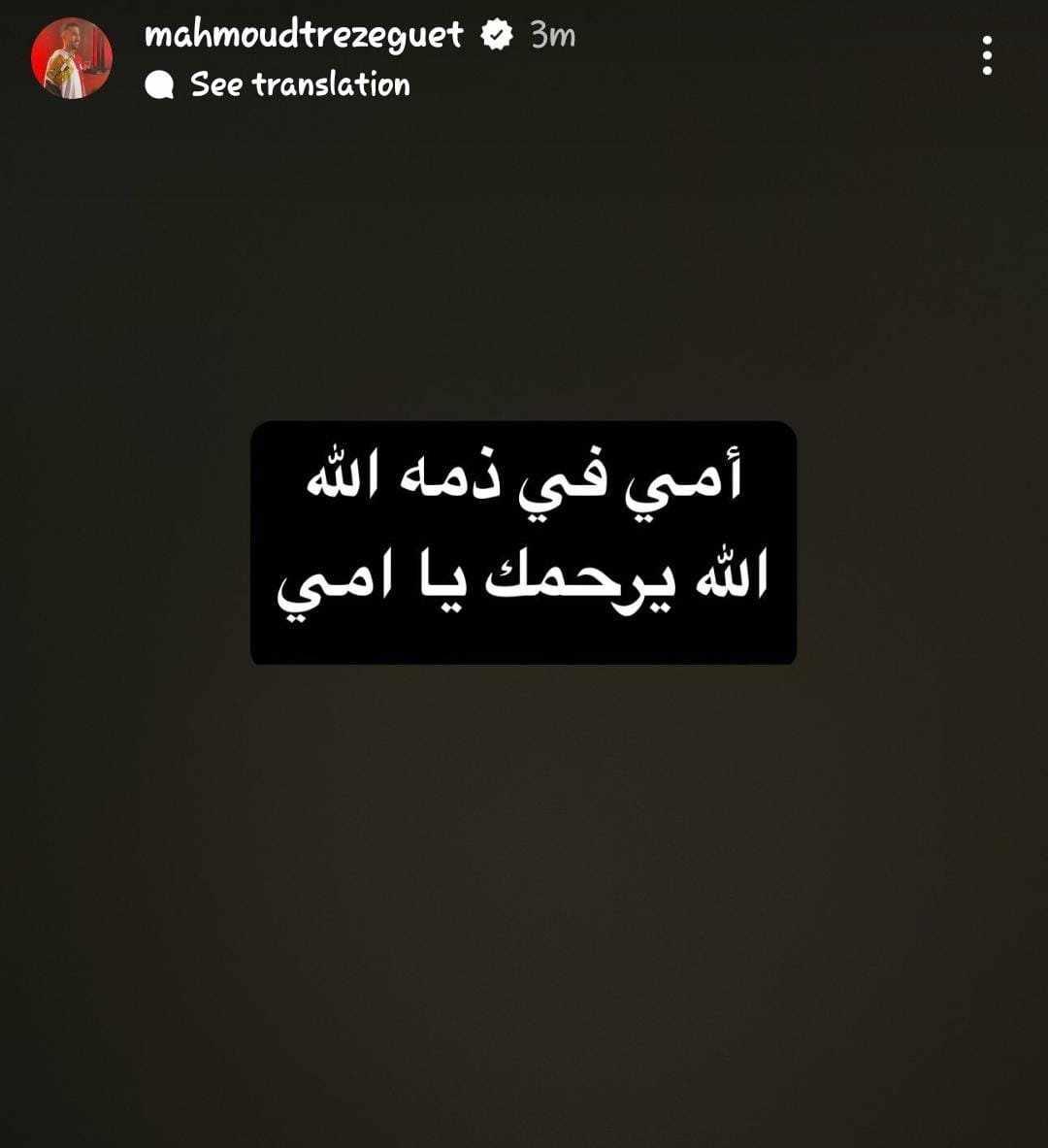 نجم منتخب مصر ينعي والدته بكلمات مؤثرةأعلن الدولي المصري محمود حسن تريزيجيه، نجم نادي الريان القطري ولاعب المنتخب الوطني، عن وفاة والدته بعد تعرضها لأزمة صحية أدت إلى تدهور حالتها.