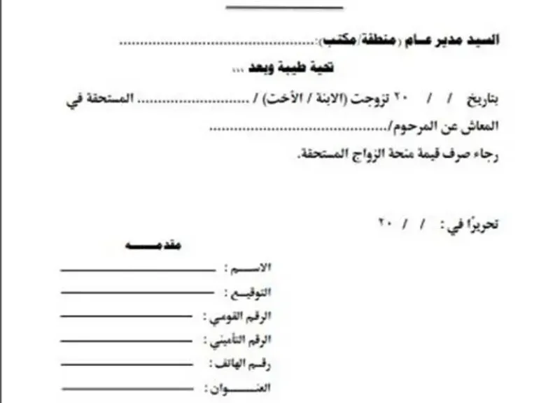 - تقديم طلب رسمي لصرف منحة الزواج، مرفقًا بالمستندات المطلوبة.