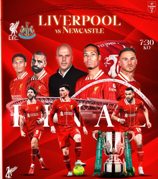 ▪️ ليفربول يصطدم بنيوكاسل في نهائي كأس الرابطة الإنجليزية على ملعب ويمبلي.