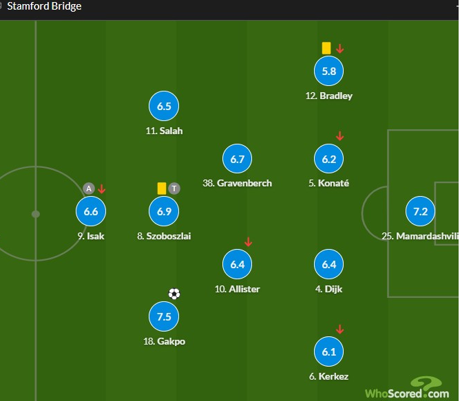 وبحسب موقع الإحصاءات العالمي "WhoScored"، جاءت تقييمات لاعبي ليفربول ضعيفة للغاية، في انعكاس مباشر لأداء الفريق الباهت خلال اللقاء.