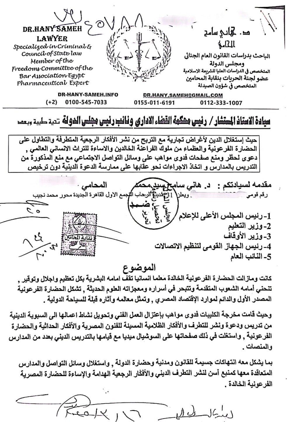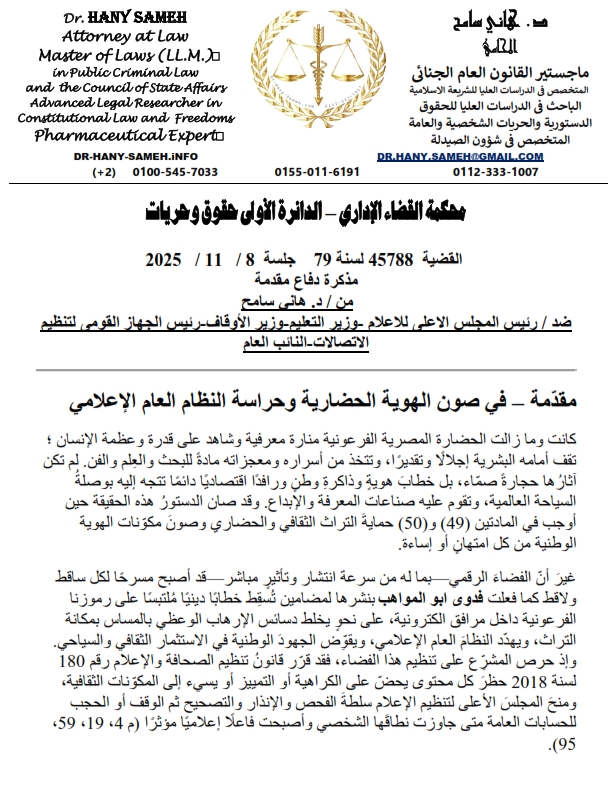 قدم الدعوى الدكتور هاني سامح المحامي، الذي اعتبر القضية «اختبارًا لمبادئ العدالة في الجمهورية الجديدة»، موضحًا أن موكلته «ليست حالة فردية بل نموذج لمواطن يطالب بتطبيق القانون دون تمييز».
