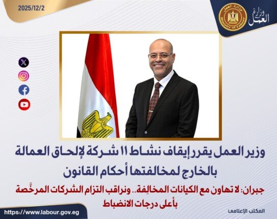 قرار عاجل من وزارة العمل: إيقاف نشاط 11 شركة لإلحاق العمالة بالخارج حفاظاً على حقوق العاملين