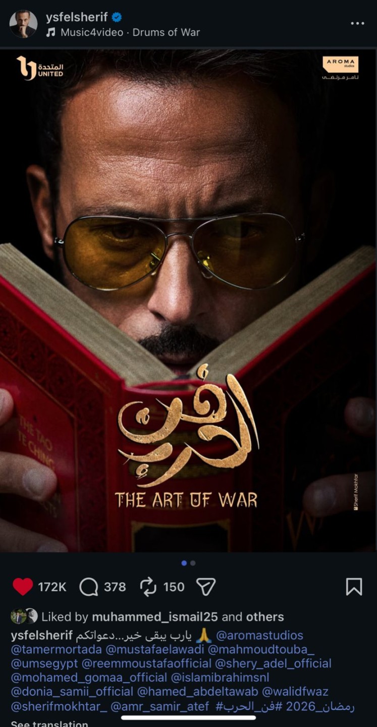 يوسف الشريف يطرح البوستر الرسمي لمسلسل «فن الحرب»