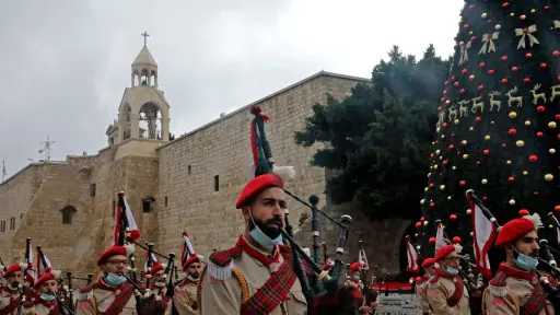 في المقابل، شهدت بيت لحم، مسقط رأس السيد المسيح حسب المعتقد المسيحي، عودة احتفالات عيد الميلاد للمرة الأولى منذ توقف الحرب على غزة.