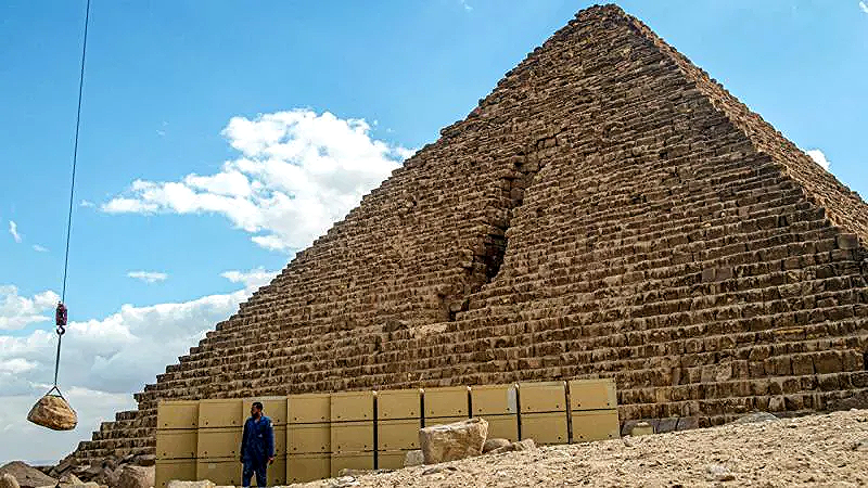 وصف مصطفى وزيري، الأمين العام للمجلس الأعلى للآثار، مشروع ترميم هرم منكاورع بأنه "مشروع القرن"، مشيرًا إلى أنه يتضمن إعادة تركيب الكتل الغرانيتية الخارجية للهرم.